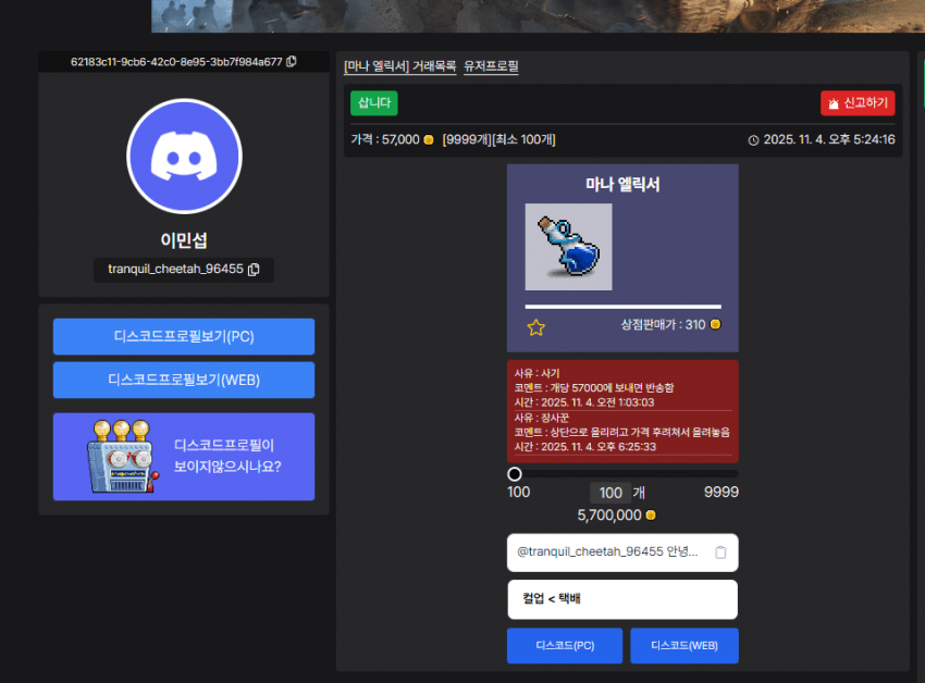 비매너 쿠난<< 자리대여받고 자리파는 악질176신궁조심 쿠난<< 자리대여받고 자리파는 악질176신궁조심 조사하다보니 계정팔고 회수하는 회수범이라함 제보자 : 메붕이 비매너 유저 : 쿠난 작성날짜 : 25-11-04 20:10 1 0