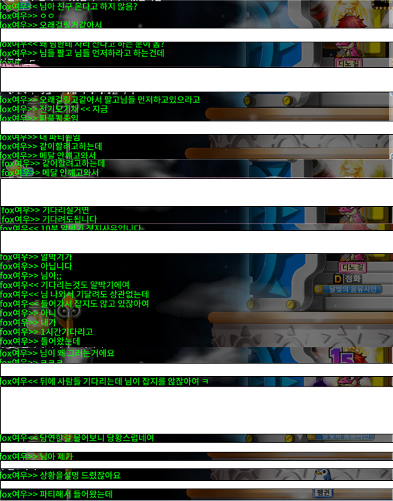비매너 파풀라투스 알박기 및 자리팔이범 파풀라투스 근원 입장을 하고서 10분동안 소환하지 않고 가만히 있어 귓을 했더니 친구를 기다린다고 했습니다. 근데 친구오는건 기달려 줄려고 했는데 갑자기 자리를 산다는 분이 나타나서 뒤에 줄을 기다리던 사람들 저포함 이 어이가 없어서 거짓말 및 자… 제보자 : 메붕이 비매너 유저 : fox여우 작성날짜 : 25-11-16 14:25 3 1