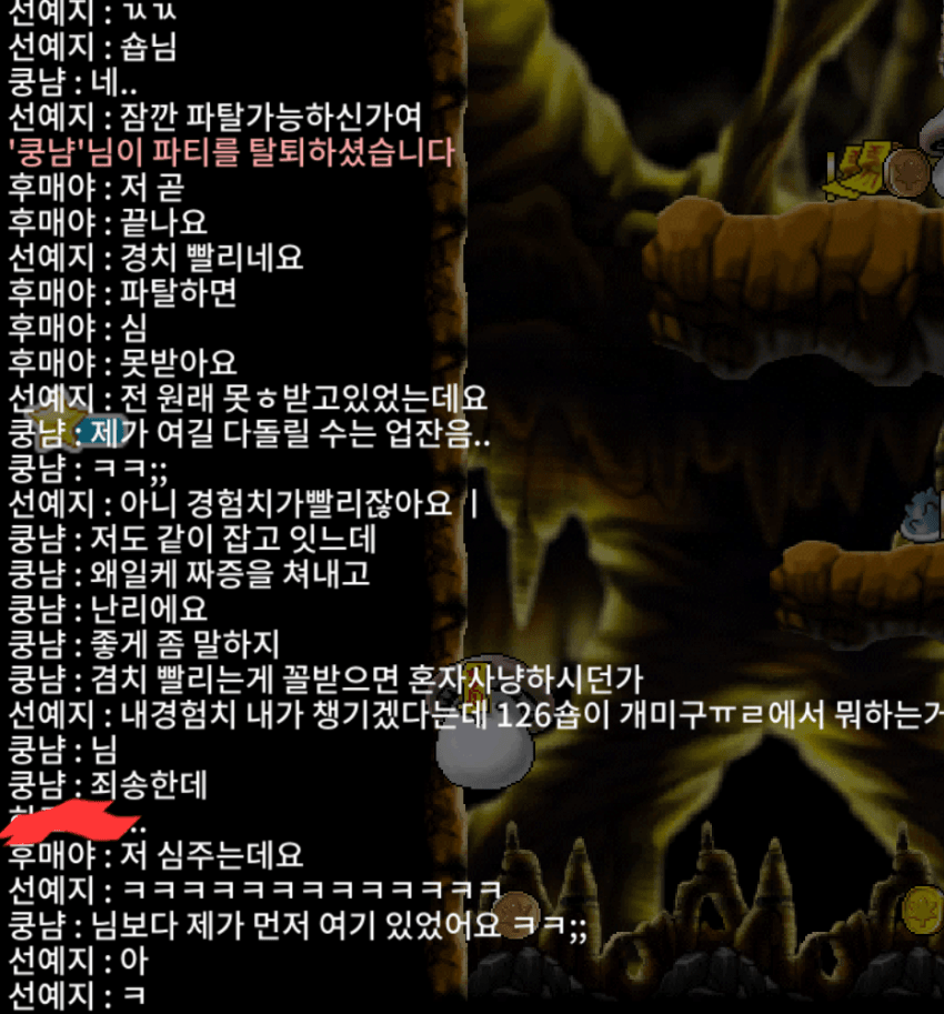 비매너 개미굴 저렙사냥터와서 괜히 시비거는 왕가슴길드 느닷없이오더니 사냥막하며 몹밀어버림 계속 그후 내가 욕을햇다는데 애초에 이 채널서 대화가 ㅍㅍ 말고는 한게없다가 얘가 사헬지대 가라고말하면서 계속 사냥방해하길래 그냥 여기서할게요 하고 계속 머라하길래 가세요라 함 120 4차하고 여기서이러고 죽치는게… 제보자 : 메붕이 비매너 유저 : 가느다란다리 작성날짜 : 25-11-05 23:41 0 0